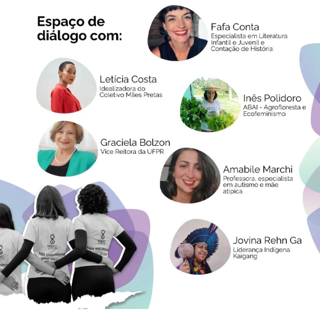 Com uma abertura inquietante de palhaçaria, seguida por um talk com mediação de Roberta Cebim, articuladora política social, o evento conta ainda com a presença de lideranças curitibanas como Fafa Conta, influenciadora da infância literária, Inés Polidoro, líder comunitária de um projeto de agrofloresta e ecofeminismo, Jovina Kaigang, líder indígena, Leticia Costa, idealizadora do Mães Pretas, e Amabile Marchi, Presidente da União de Pais para o Autismo.