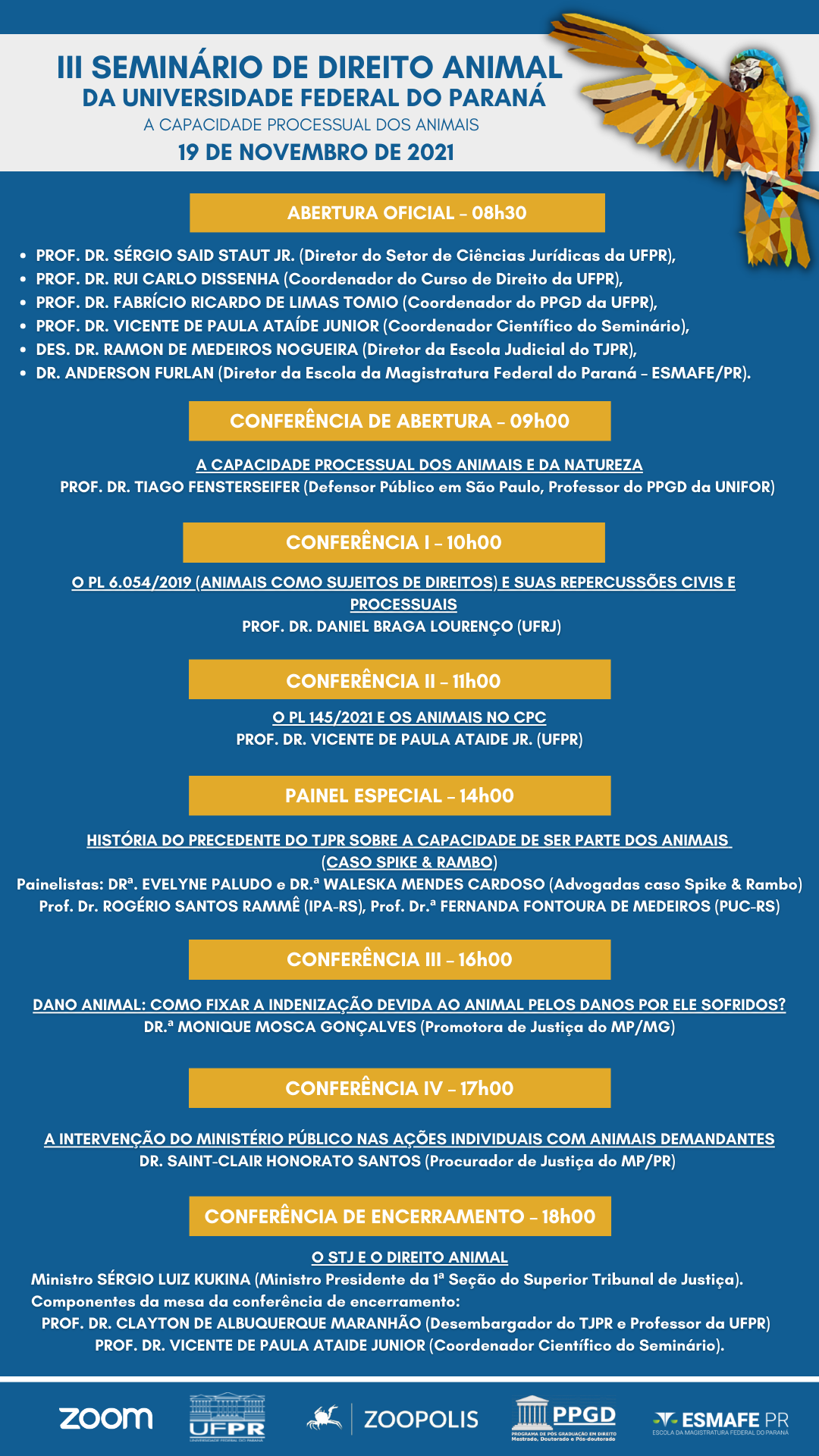 A terceira edição do evento abordará debates sobre o recente precedente do Tribunal de Justiça do Estado do Paraná, o qual reconheceu, pela primeira vez na história, que animais têm capacidade de ser parte em demandas judiciais e podem pleitear direitos em juízo, mediante representação legal.