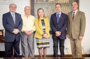 Da esq. para dir.: Reitor Zaki Akel Sobrinho, Professor Gilberto Fortes Marcondes, Profª. Soraya Rosana Torres Kudri, ex-Reitor Carlos Alberto Faraco, Vice-Reitor Rogério Andrade Mulinari.