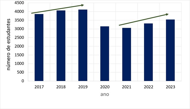 Além disso, houve iniciativas para retomar o crescimento dos números de ingresso de estudantes e de formaturas, prejudicados pela pandemia. No último ano, a evasão teve seu menor número desde o início da gestão, com exceção do ano de 2020.