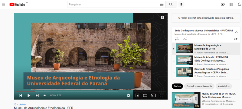Os vídeos são publicados às sextas, nos perfis oficiais do Fórum no Instagram e no YouTube. Têm curta duração e apresentam ao público os museus universitários participantes do evento, informando dados sobre sua fundação, exposições e principais atividades. Até o momento, três instituições da UFPR foram anunciadas: o MAE-UFPR, o Museu de Arte da UFPR (MusA) e o Centro de Estudos e Pesquisas Arqueológicas da UFPR (CEPA). O Museu de Ciências Naturais da Universidade Federal do Rio Grande do Sul (MUCIN-UFRGS) e o Museu de Ciências Naturais da UFPR (MUCIN-UFPR) serão tema dos próximos vídeos.
