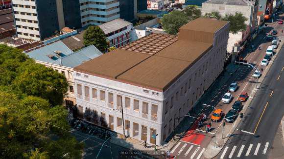 Pinheiro e Hashimoto focaram em preservar as marcas do edifício curitibano, inclusive as que mostram os efeitos do incêndio. Para isso, o aerogel, que é um sólido de baixas densidade e condução térmica, ajudou na criação de estratégias que garantissem o aspecto original da edificação, preservando assim as marcas do tempo e da história do edifício.