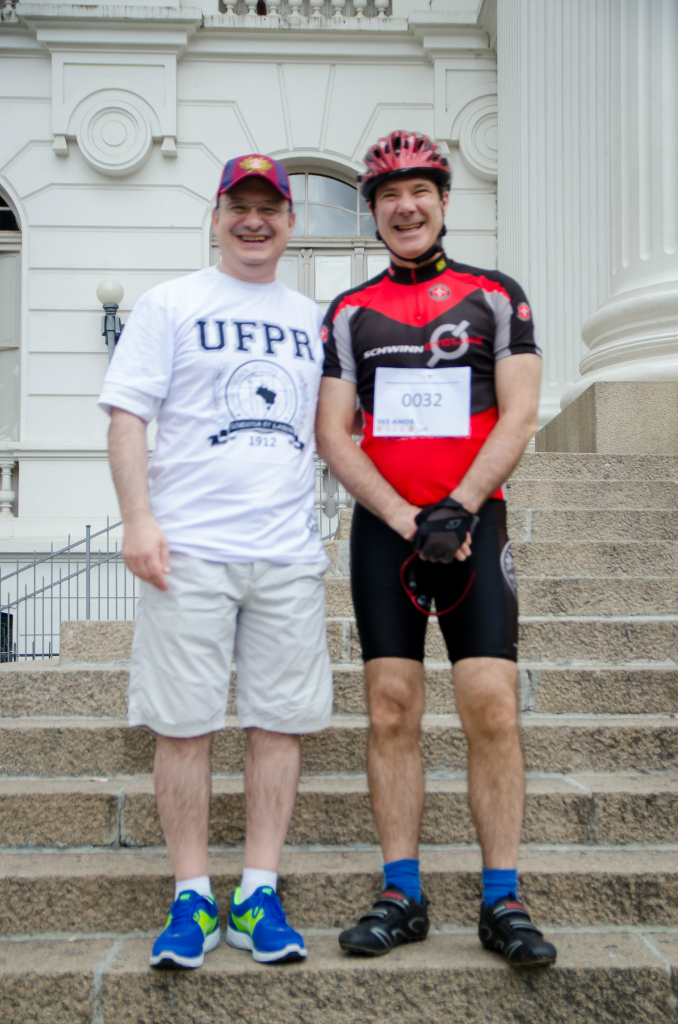 Na manhã último domingo, dia 14, a Praça Santos Andrade foi tomada por atletas e entusiastas que participaram da caminhada e pedalada em celebração dos 102 anos da Universidade Federal do Paraná. O trajeto para quem participou sobre duas rodas tem 10km; para aqueles que preferiram ir à pé, o percurso era de 5km. A saída e a chegada aconteceram na Praça Santos Andrade, em frente ao prédio histórico da Universidade.