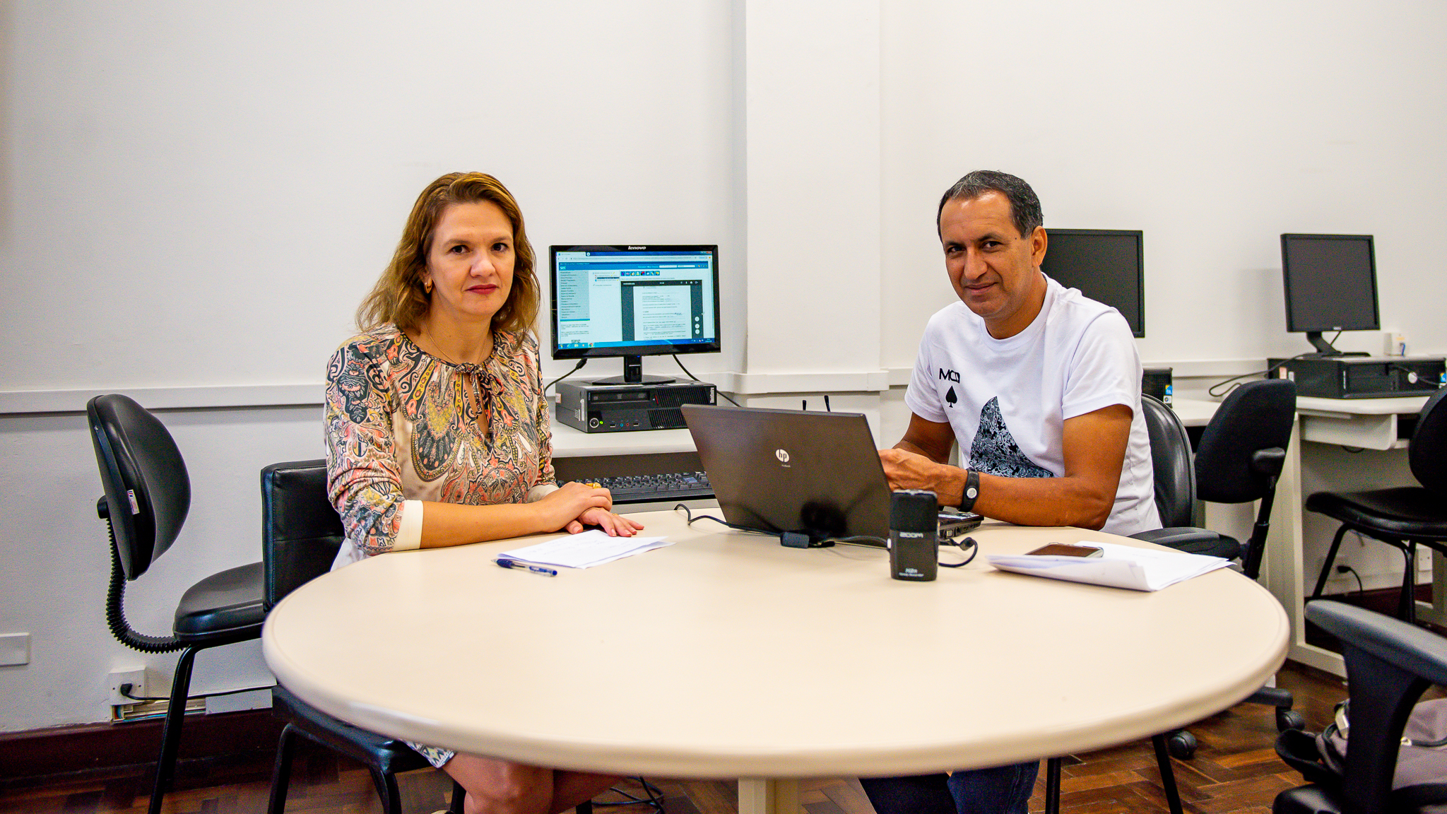 Professora da UFPR, Tatyana Friedrich, e Lázaro Romualdo da Silva, oficial de elegibilidade do Conare. Foto: Marcos Solivan